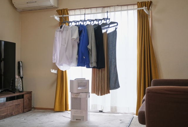 部屋干しの強い味方が、サーキュレーターと除湿機が一体になったタイプの家電です。短時間で乾き、臭いも軽減されるので梅雨時期には欠かせません。